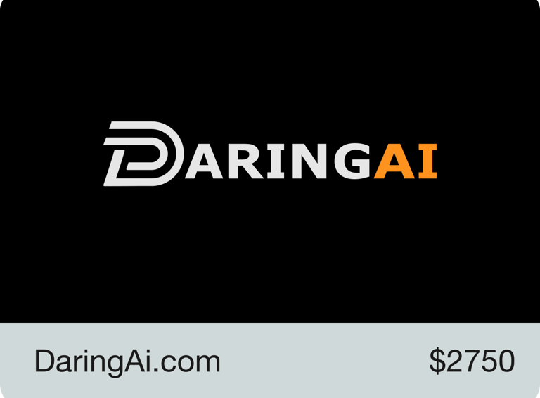 DaringAi: A bold, confident name that signals courage, innovation, and fearless use of artificial intelligence. It suggests pushing boundaries and making smart, decisive moves with advanced tech. DaringAi feels modern, ambitious, and purpose-driven.